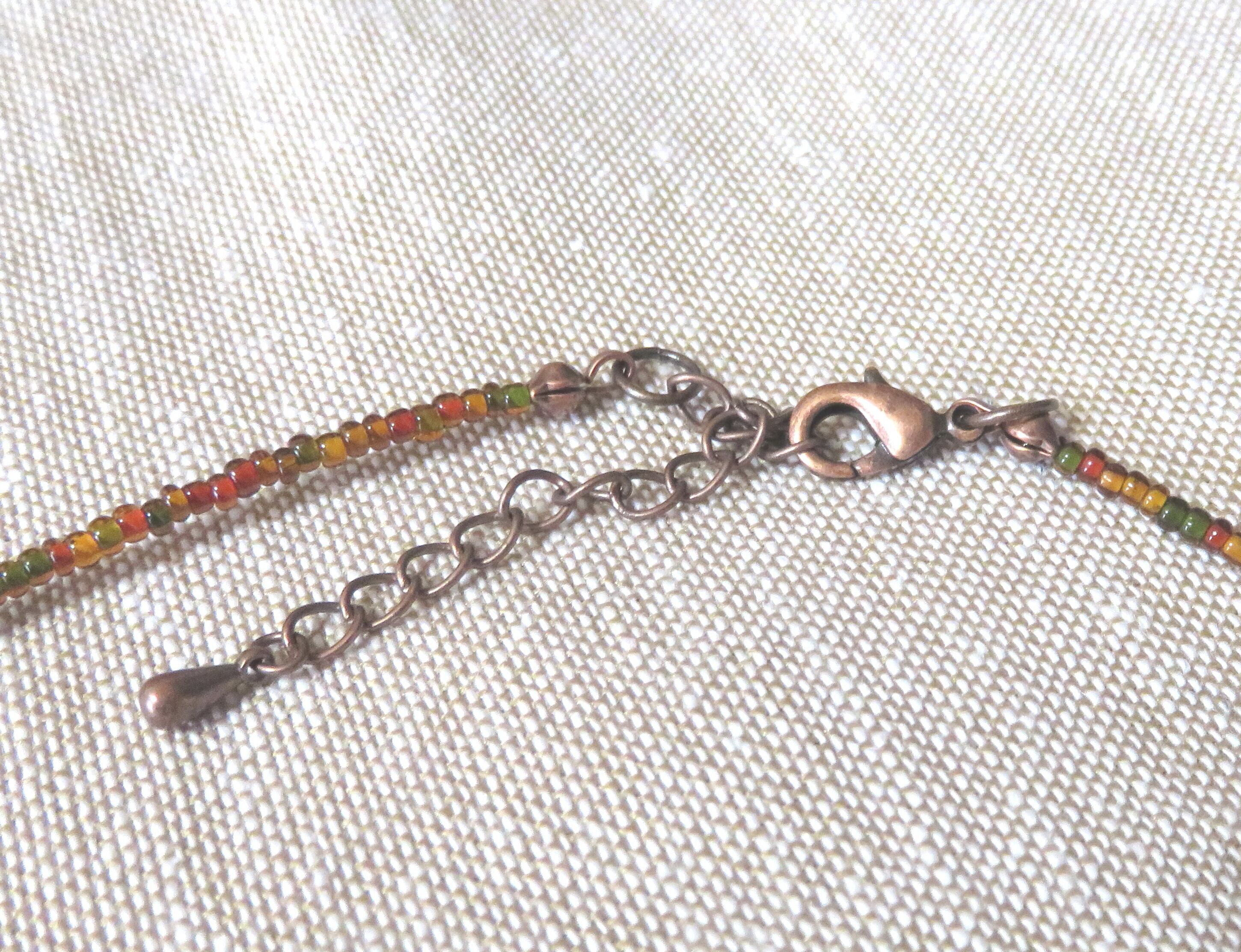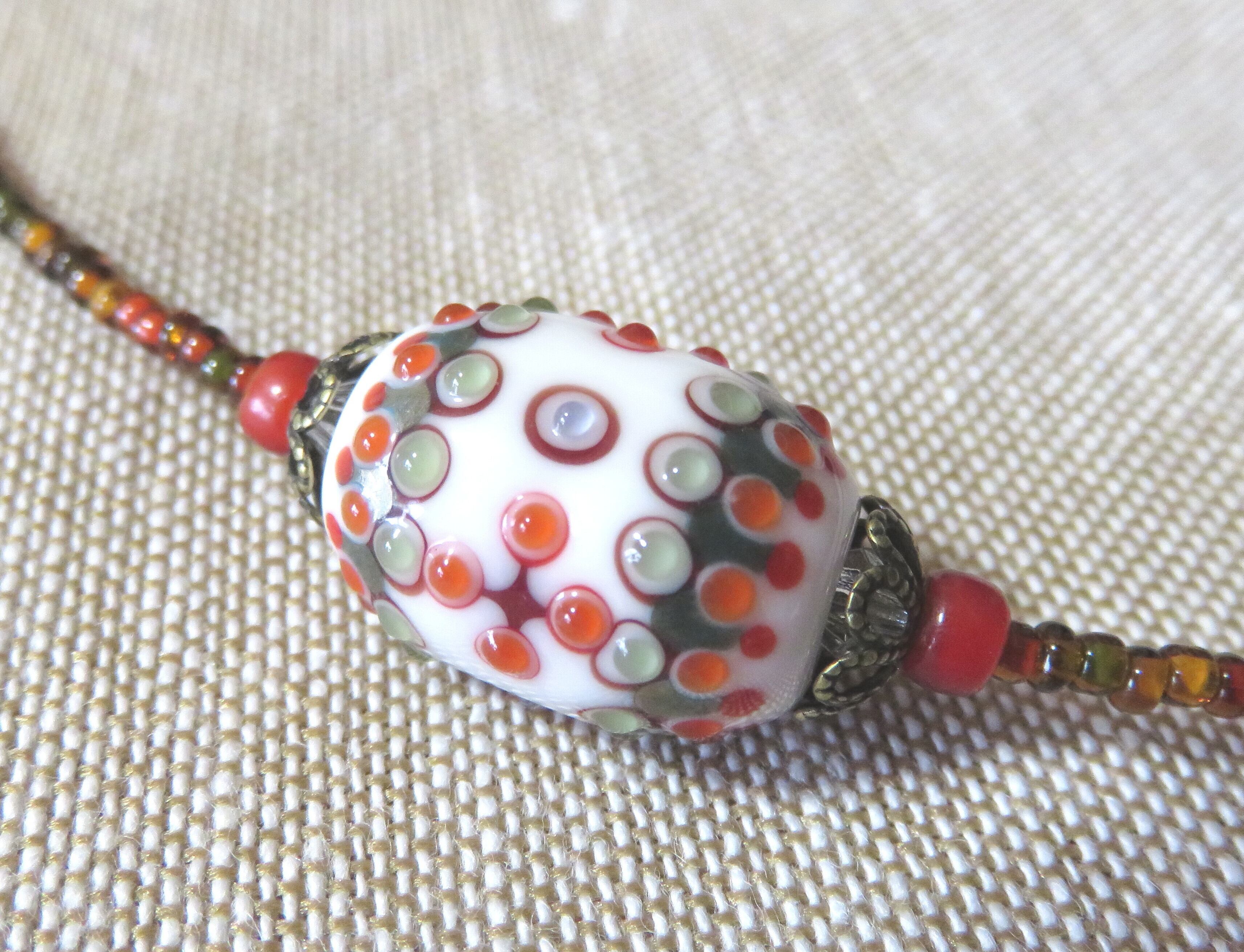Dotted glass bead necklace. Side beads and seed beads are glass.