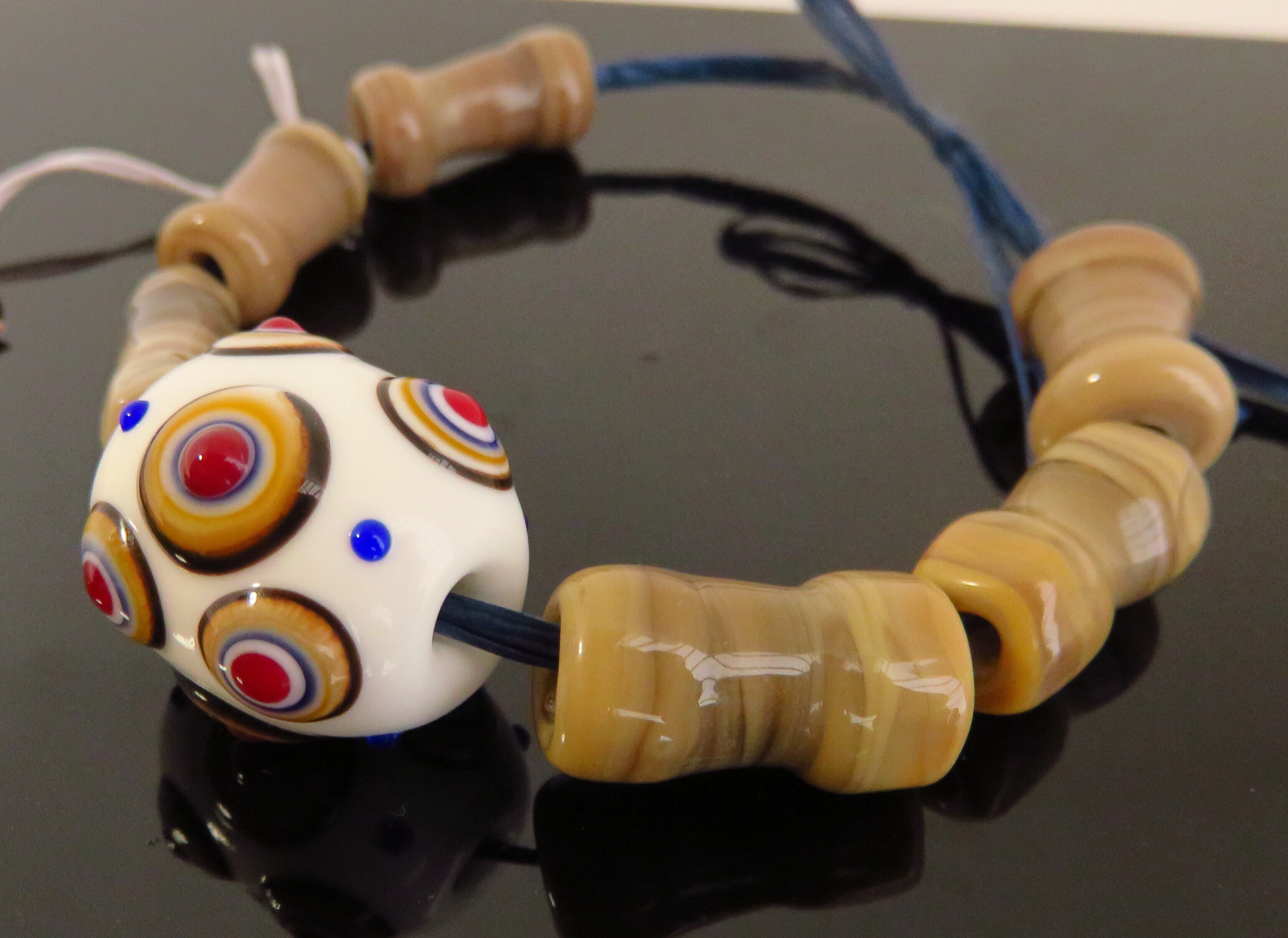 A set of dot-patterned glass beads (1 piece) and small beads (6 pieces).