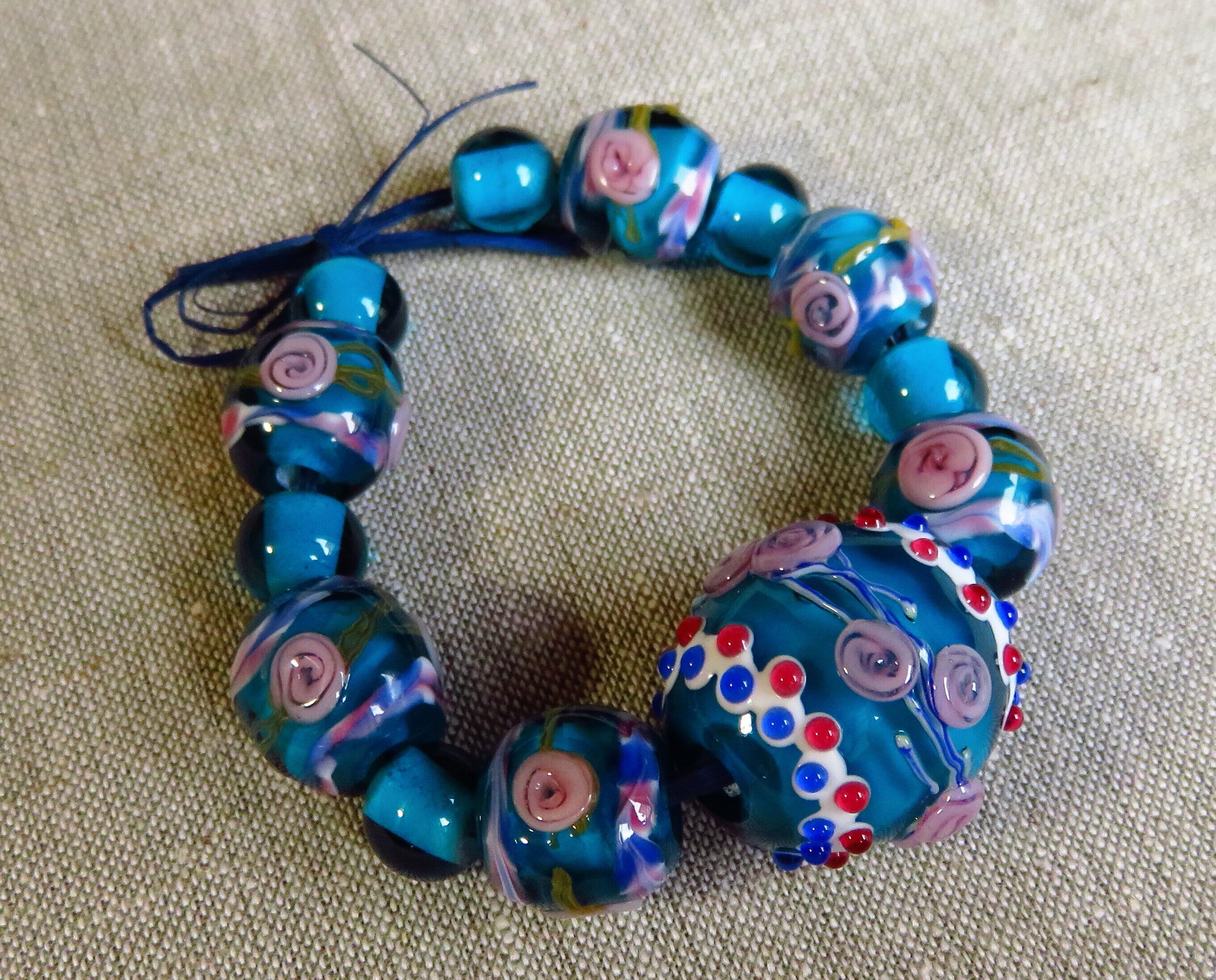 A set of dot and flower glass beads (1 large, 6 small) and small beads (6).