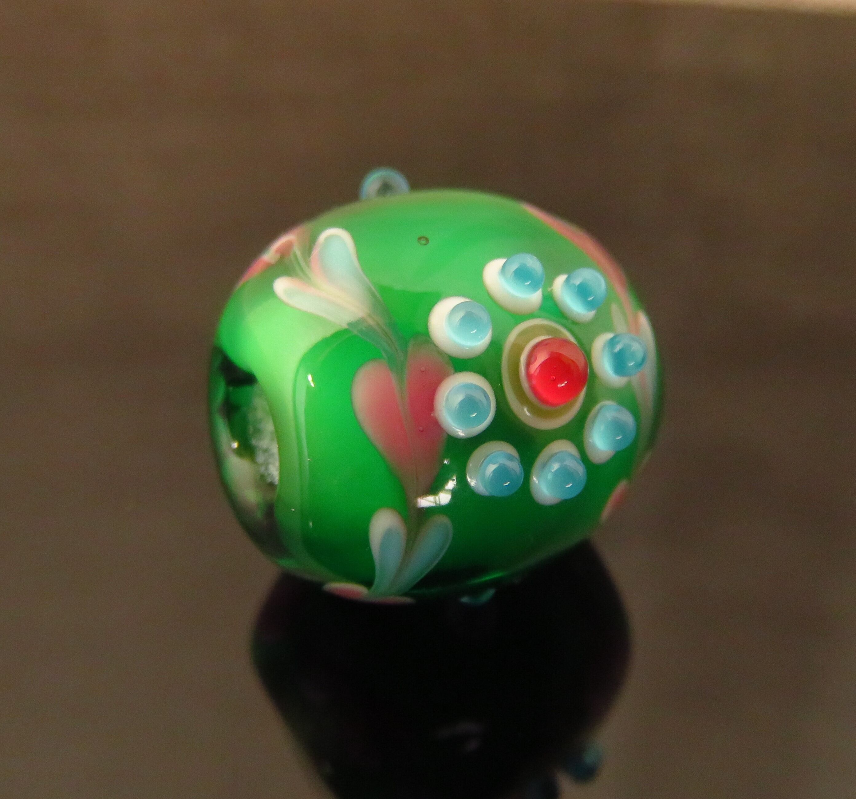 ビーズサイズ:最大径約φ14.2(+ドット高さ1.5mm×2)×最大長さ14.9mm